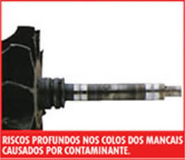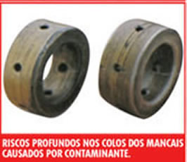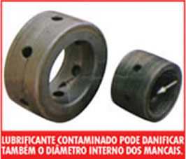 Por outro lado o atrito excessivo entre eixo e mancais, desgastará principalmente a região interna dos mancais radiais, chegando a “fechar” os furos de lubrificação. Outras peças como colar, prato, espaçador, também sofrem avarias causadas por ausência de lubrificante.